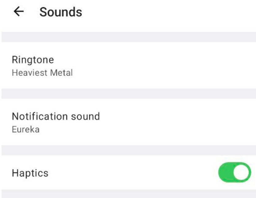 - Haptics: here, you can enable vibration for your device to notify you of incoming calls or messages of any type.